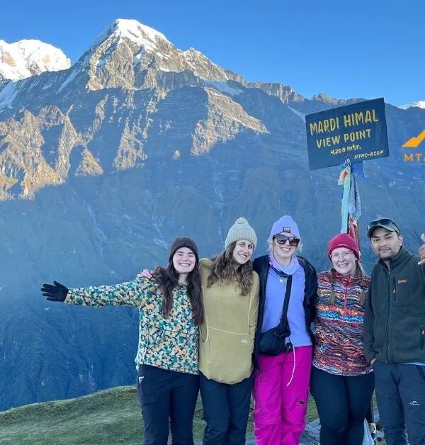 “So, what can you expect on the Mardi Himal Trek? Imagine waking up and seeing the big Annapurna mountains, drinking local tea in friendly tea shops, and meeting other hikers from different places. Unlike busier routes, Mardi Himal lets you enjoy peace and a bit of a challenge. Walking through colorful forests and high lands, you’ll feel both calm and excited. And the villages you’ll pass? They’ll show you how everyday life in Nepal really is. Ready to put on your hiking shoes?”